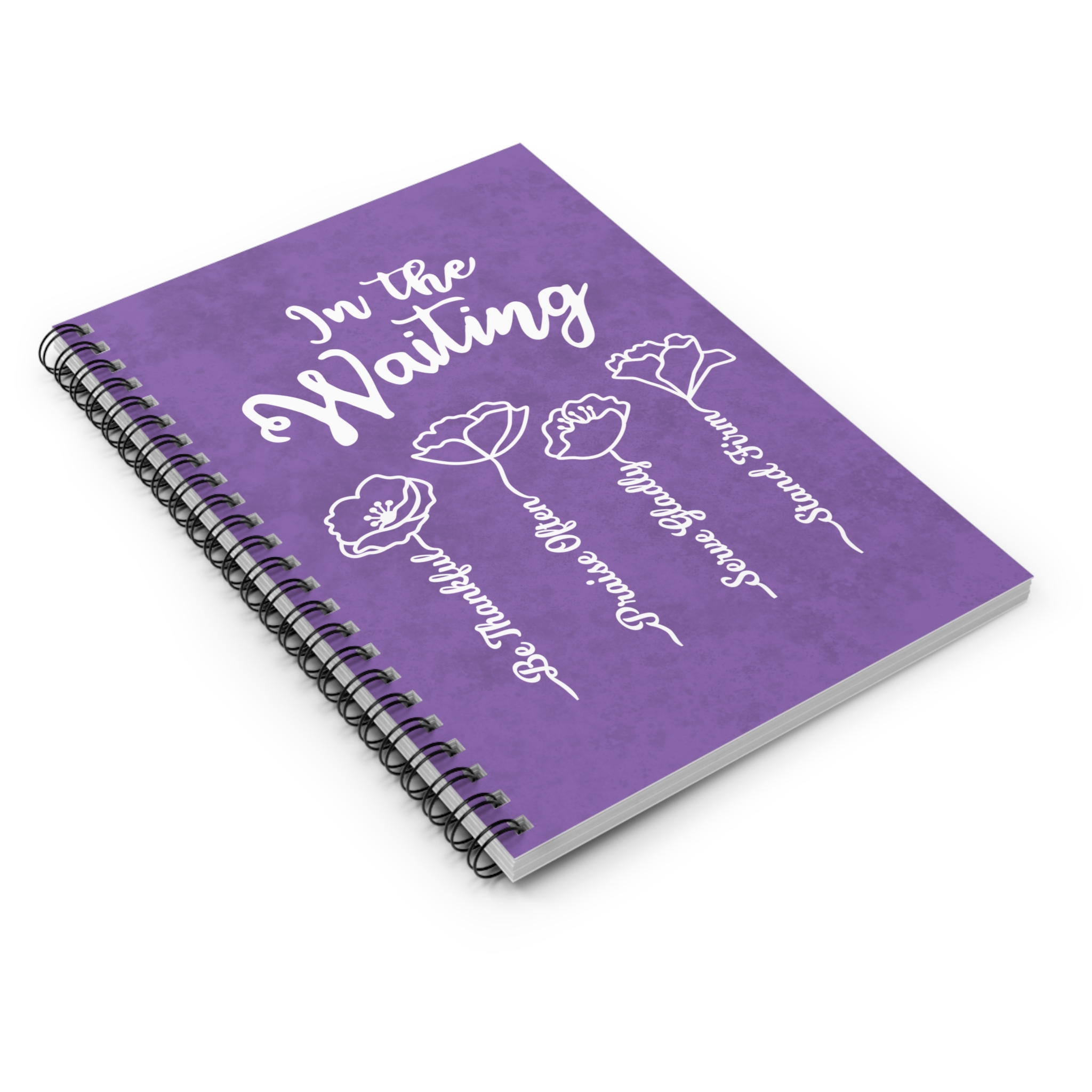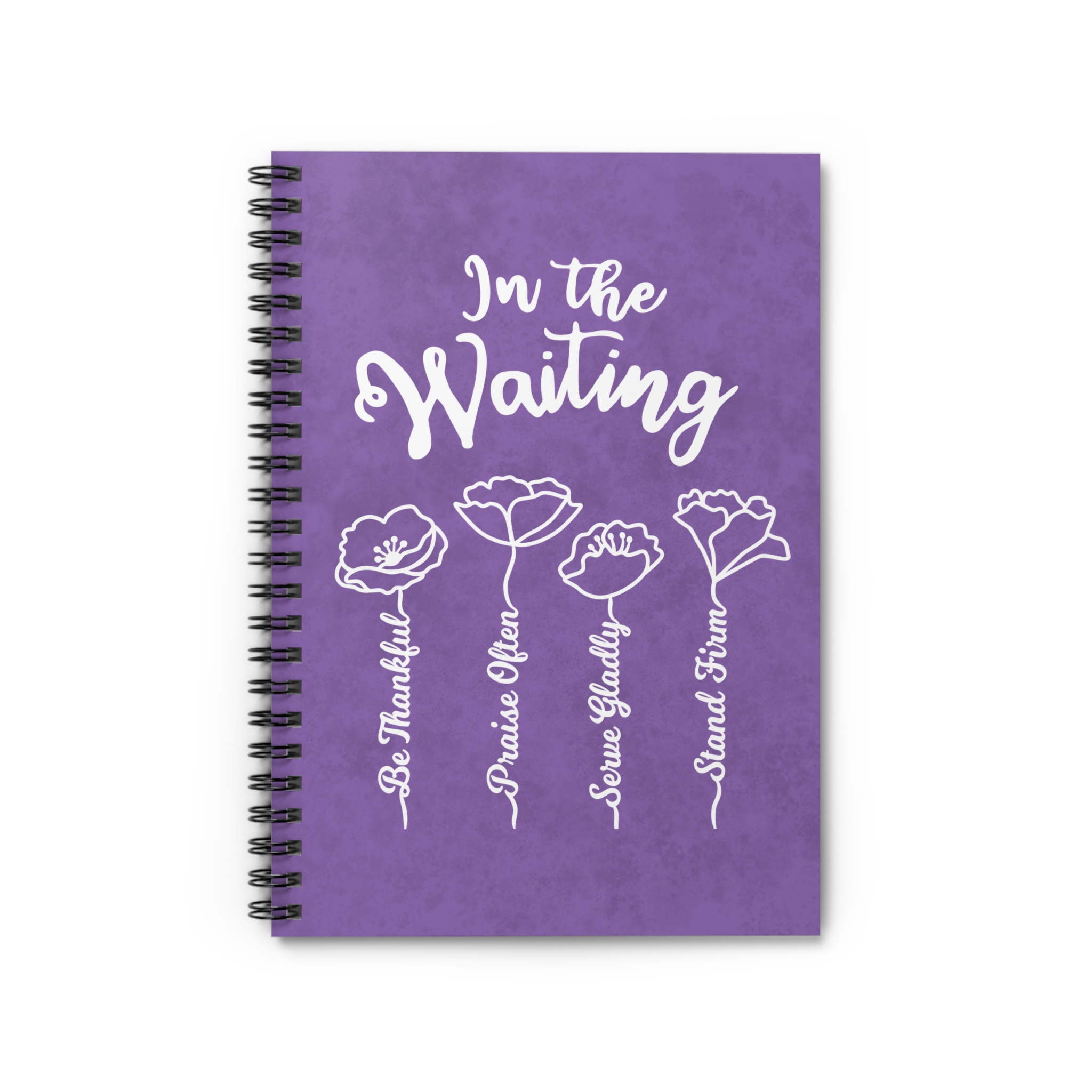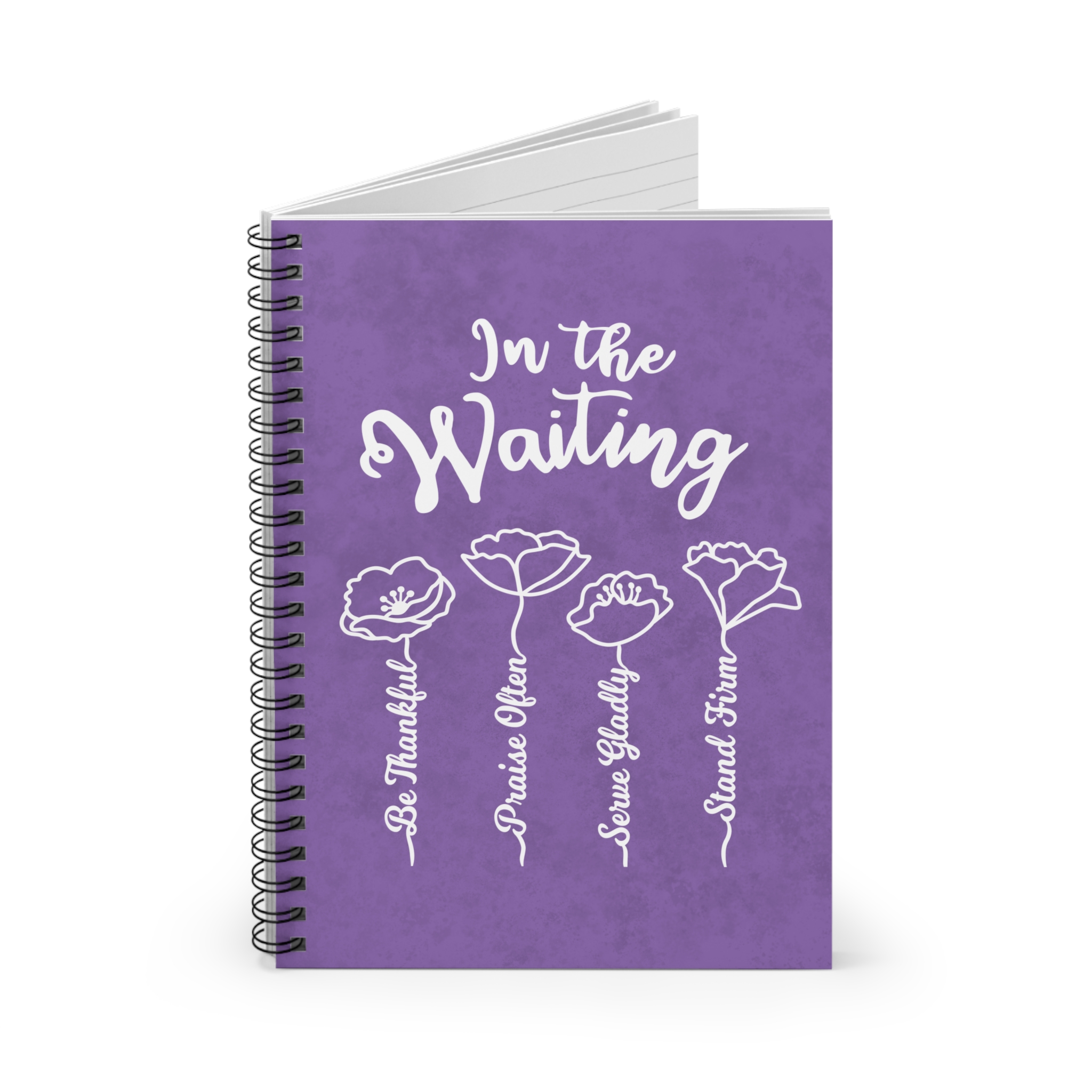 When you are waiting through a difficult season of life, let this be an encouragement to you. Text "In the Waiting, Be Thankful, Praise Often, Serve Gladly, Stand Firm". Purple background.